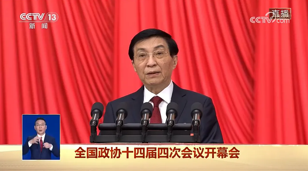 全国政协主席王沪宁代表政协第十四届全国常务委员会作工作报告。